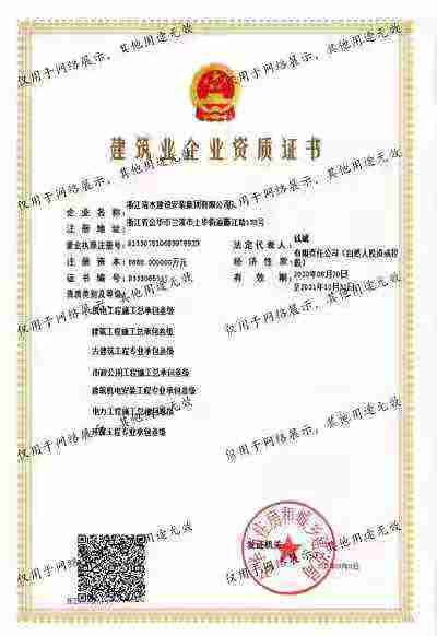 浙江清水建設安裝集團有限公司成立于2013年,注冊資金6688萬元。集團具有消防設施工程專業(yè)承包壹級、城市與道路照明專業(yè)承包壹級、電子與智能化專業(yè)承包壹級、建筑裝飾裝修專業(yè)承包貳級、防水防腐保溫專業(yè)承包貳級、市政工程施工總承包貳級、機電工程施工總承包貳級、建筑工程施工總承包貳級、電力工程施工總承包貳級、機電工程專業(yè)承包貳級、環(huán)保工程專業(yè)承包貳級、古建筑工程專業(yè)承包貳級、特種工程結構補強專業(yè)承包、建筑施工勞務作業(yè)專業(yè)承包(憑建筑業(yè)企業(yè)資質(zhì)證書經(jīng)營